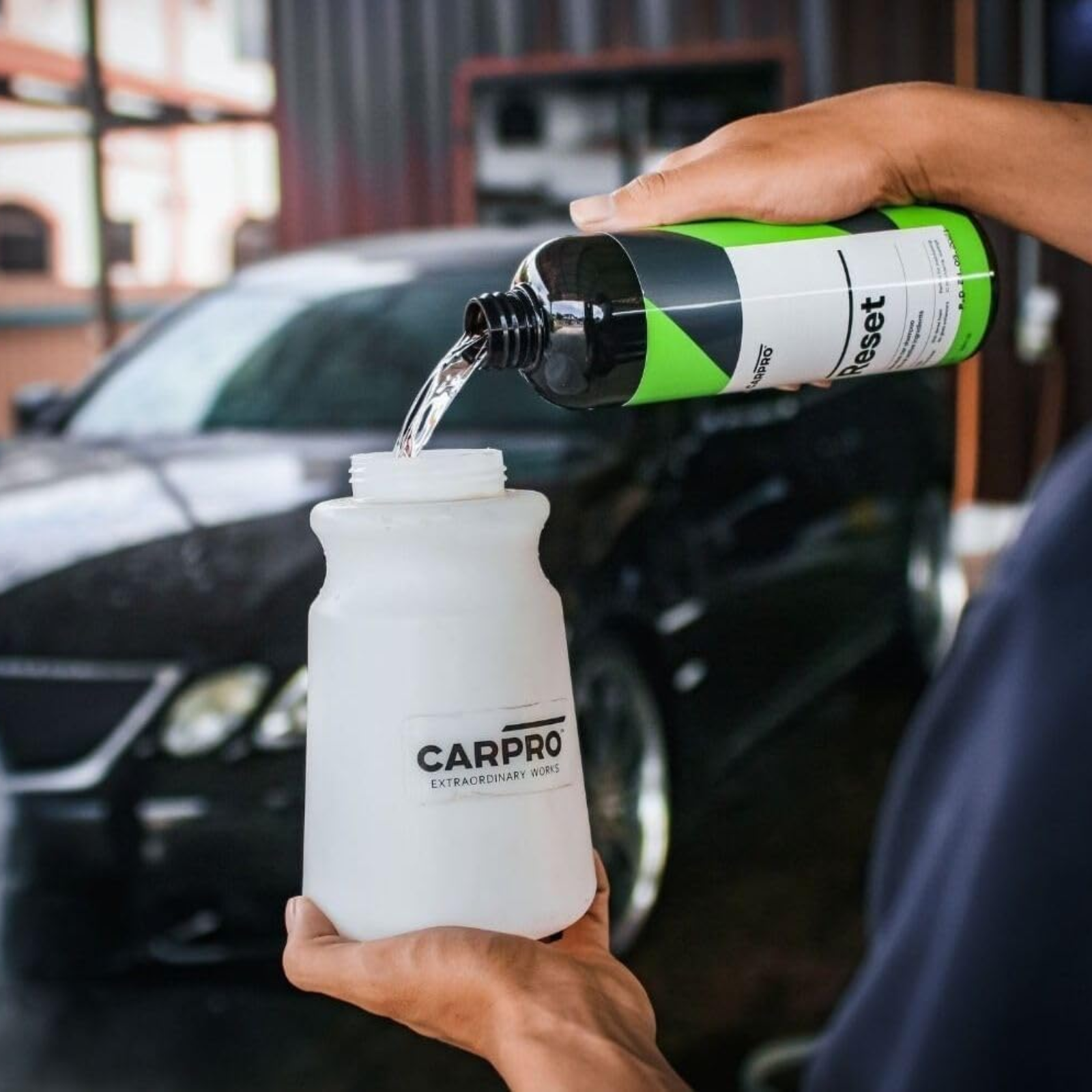 CARPRO Reset was formulated as the perfect partner to nanotechnology based sealants and coatings, with cleaning properties tailored to their unique needs. Utilizing intelligent pH surfactants, Reset breaks down road grime and traffic films with the power of an alkaline cleaner, whilst being as gentle on the surface as a pH-neutral shampoo. Afterwards Reset quickly rinses free from the surface, leaving behind no soap residues or interfering silicones, and restoring the beading and dirt releasing properties (The ‘Hydrophobic Effect’) of the surface to help maintain its protection. Combined with excellent lubrication, a strong foaming action for improved dirt suspension, and a high dilution ratio, this makes for a highly effective and economical wash. At the same time, Reset is almost entirely based upon naturally occurring, organic ingredients, making it as safe for the environment and for the user as it is for the vehicle. If dirt is hiding the beauty of your car or motorcycle, then you know that it is time for a Reset!