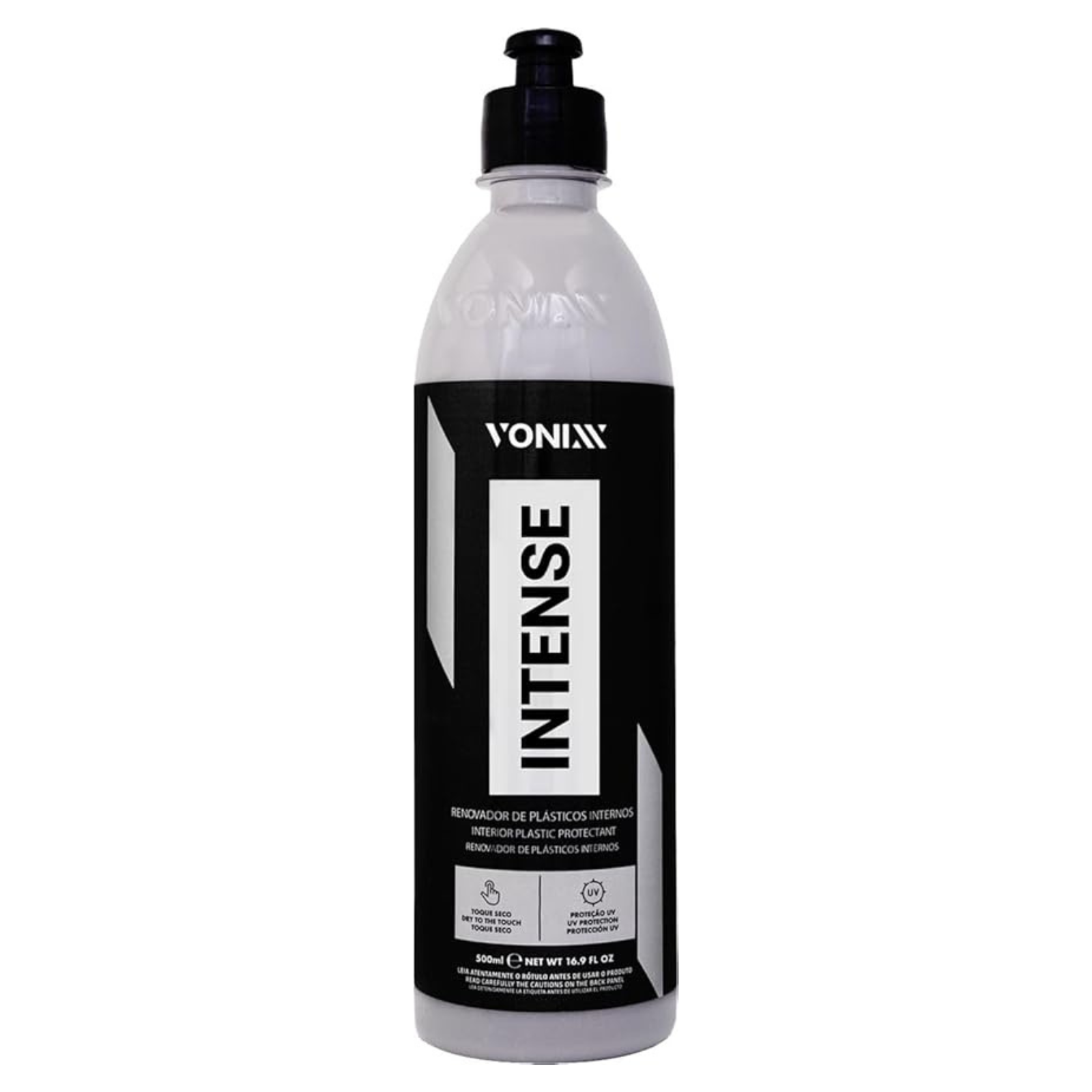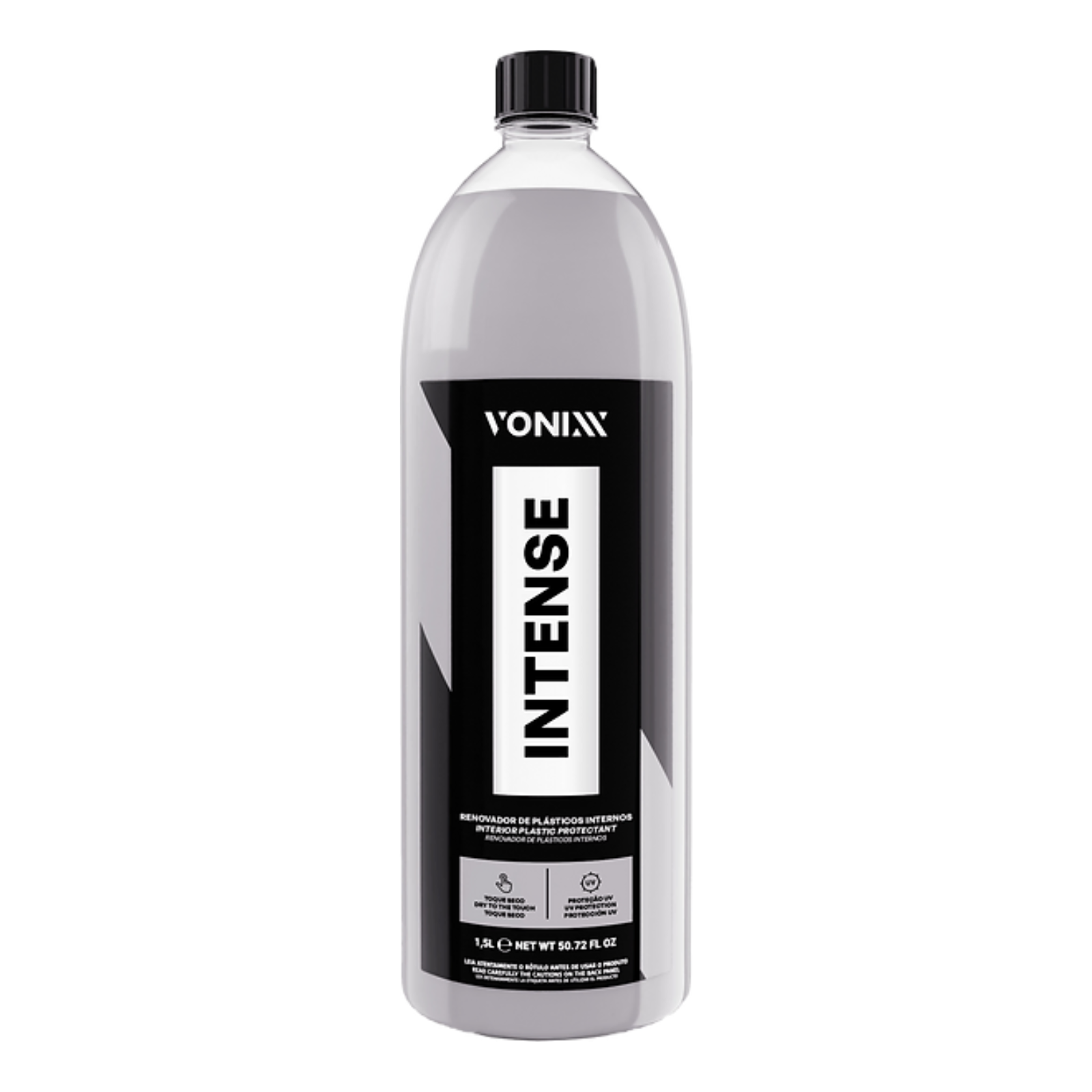 INTENSE is a plastic renewer with UV protection, whose balanced formula promotes a natural finish and dry touch, with a durability of 6 months. The product must be used specifically on the inside of the car, on surfaces such as vinyl and plastics in general.