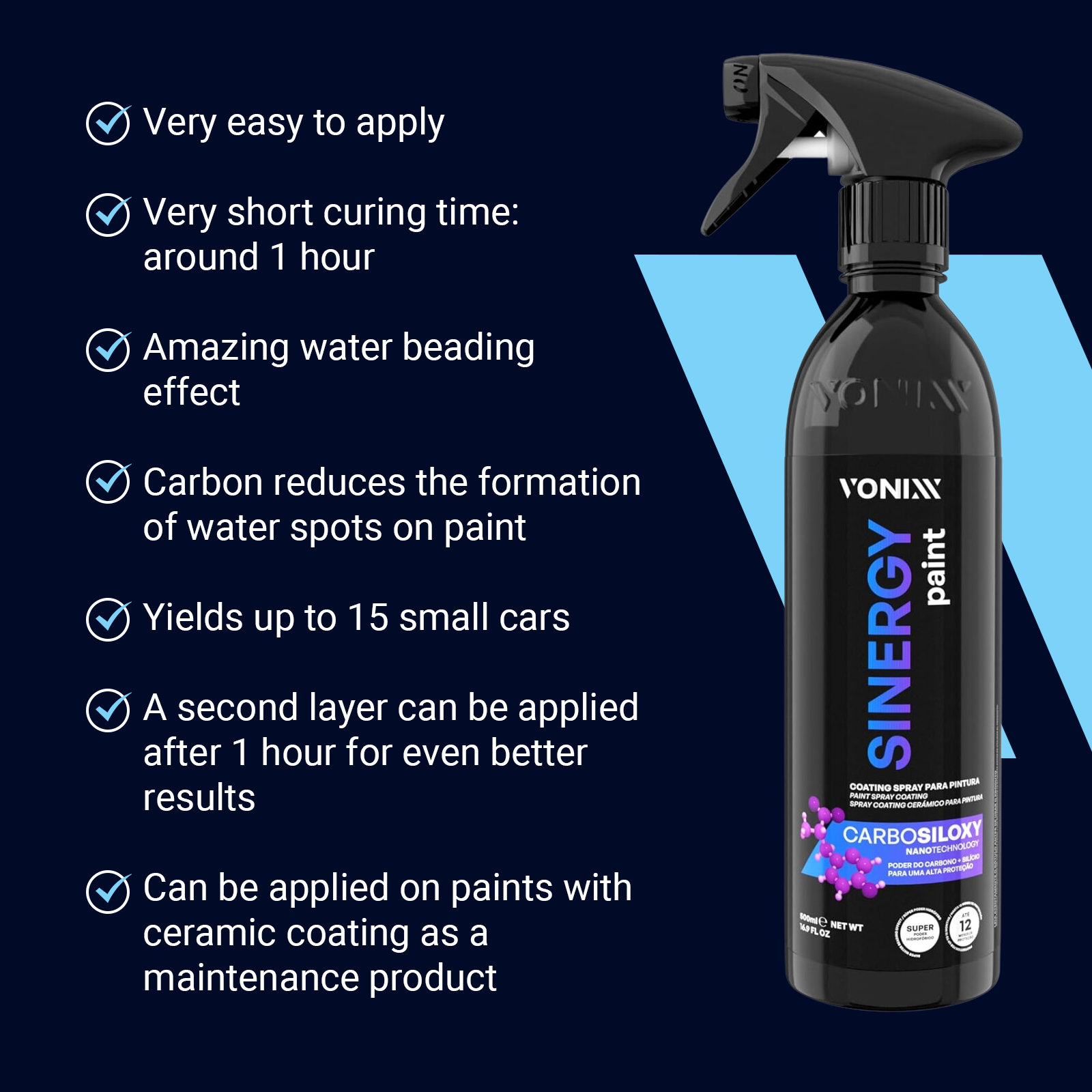 - Revolutionary Spray Coating: Vonixx Sinergy Paint Spray Coating introduces a groundbreaking innovation in car detailing, enhancing your vehicle's protection and shine to unprecedented levels.