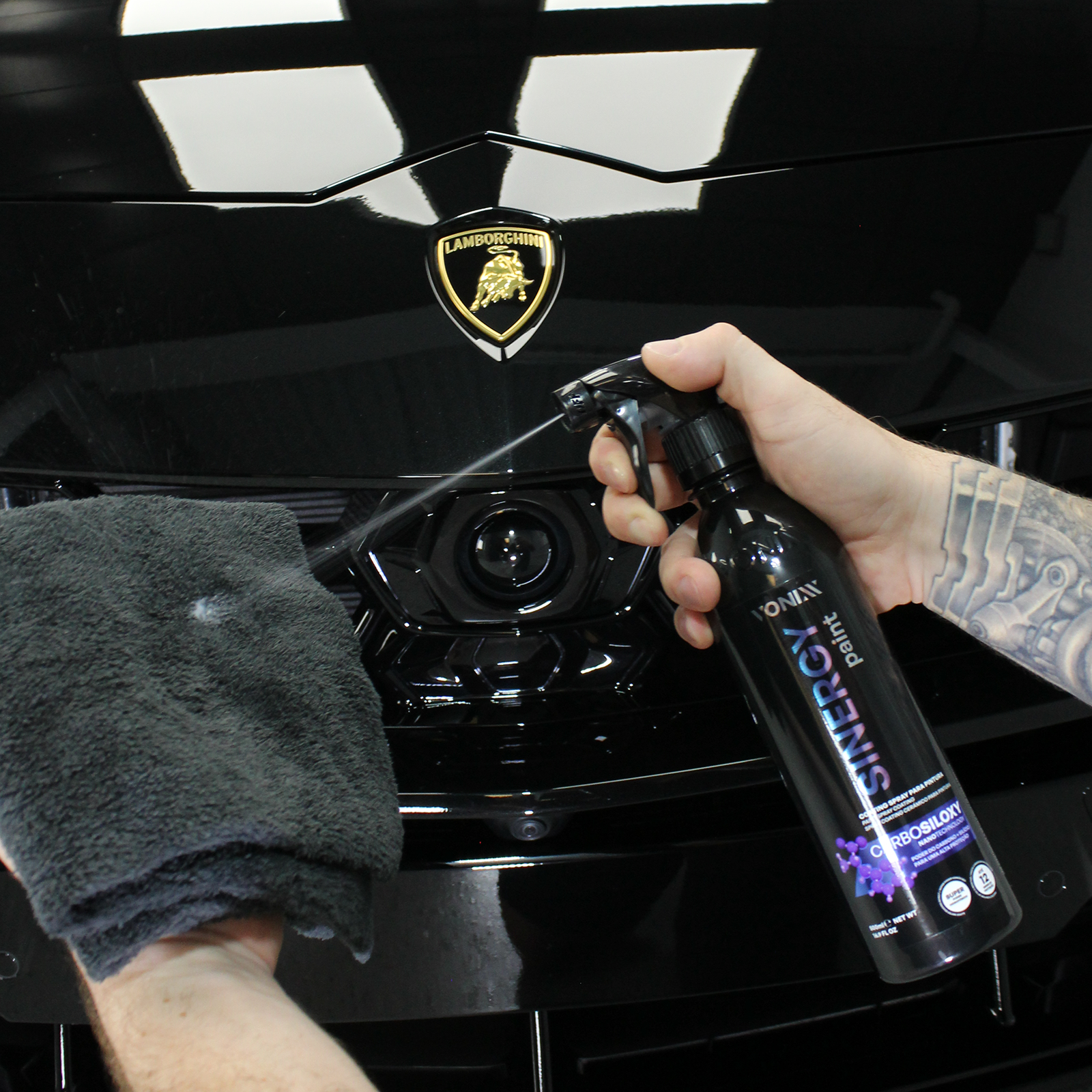 Vonixx Sinergy Paint Spray Coating marks a revolutionary leap forward in car detailing, presenting an innovative spray coating designed to elevate your vehicle's protection and shine to unprecedented levels. Engineered with Vonixx's exclusive CARBOSILOXY nanotechnology, harnessing the combined power of Carbon and Silicon (SiO2), this advanced formula delivers unparalleled results in paint protection and enhancement. Providing up to 12 months of robust defense, SYNERGY creates a resilient and hydrophobic film that not only reduces friction and minimizes light scratches but also enhances the brilliance of your vehicle's finish. With its exceptional water and dirt repellency, this product ensures a showroom-worthy appearance that lasts. Versatile in its application, Synergy can be used on various surfaces including paints, PPF, vinyl wraps, plastics, and headlights, offering comprehensive protection across your entire vehicle. Its user-friendly design makes it a perfect addition to any car polishing kit, simplifying the detailing process and delivering professional-grade results with ease. Take your car care to the next level with Synergy by Vonixx, the ultimate solution for achieving a flawless finish and long-lasting protection. Whether you're looking to polish your car, enhance your car washing kit, apply ceramic coating, or restores your car paint, Synergy has you covered with professional-grade results and ease of use.